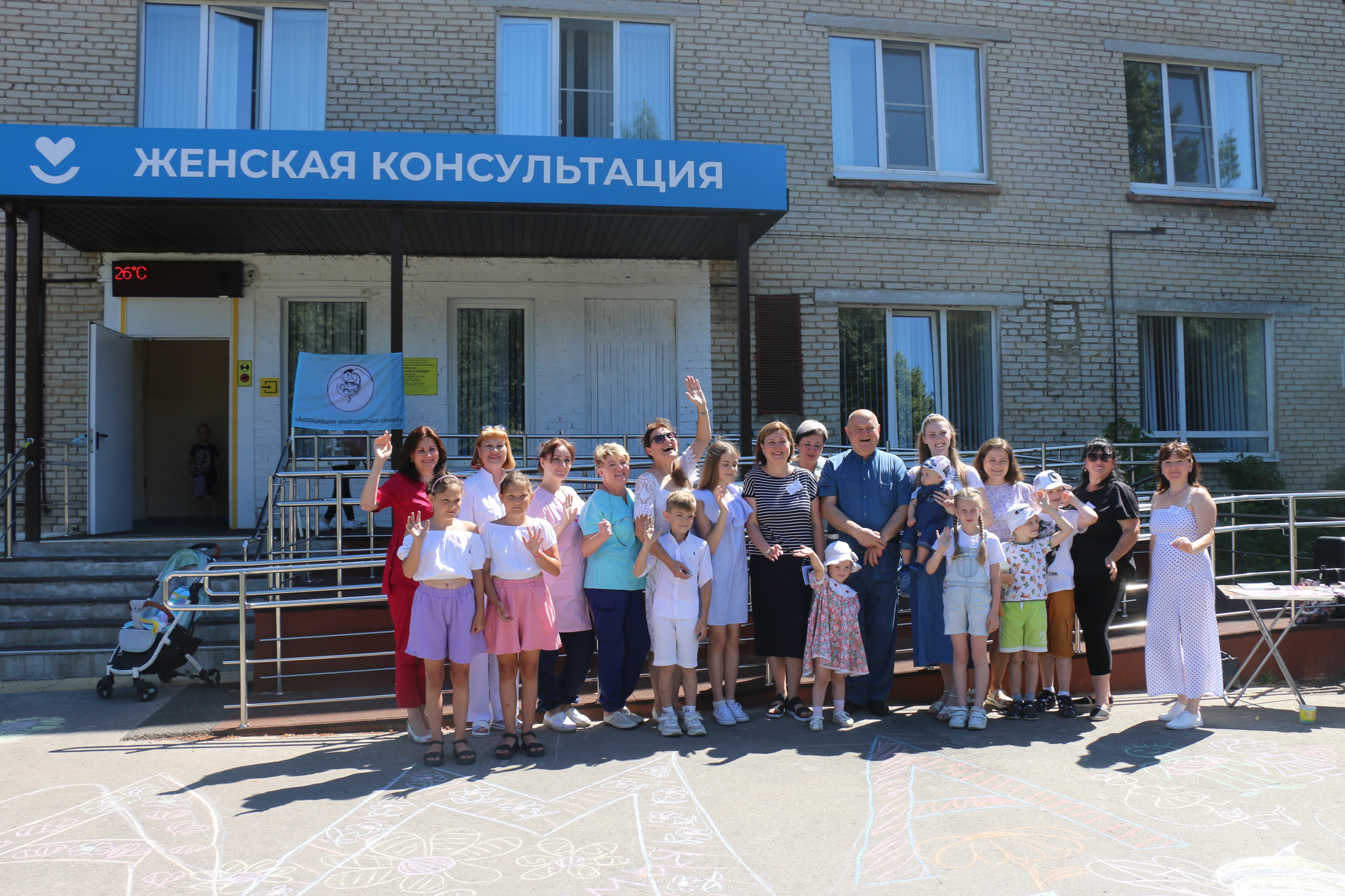 Сегодня в честь светлого праздника, посвященного сохранению семейных ценностей, дети и их родители совместно с медицинскими сотрудниками и представителями Новомосковского отделения Ассоциации многодетных разрисовали асфальт у крыльца женской консультации яркими цветными мелками.