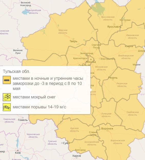 В ночь на 9 мая в Тульской области ожидаются заморозки до -3 градусов. Такие прогнозы дают синоптики Гидрометцентра. В регионе объявлен оранжевый уровень опасности.