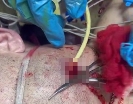 На месте ультразвуковое исследование показало 10-сантиметровый тромб и дефект общей сонной артерии в области бифуркации. Было принято решение о проведении экстренной операции.