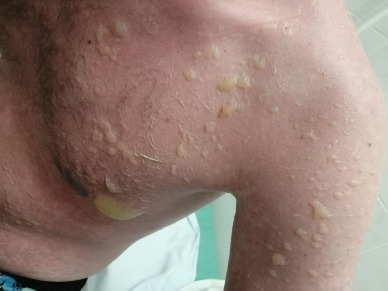 В день госпитализации сыпь усилилась, появились пузыри с прозрачным содержимым. Мужчине было больно к ним прикасаться. Температура повысилась до 39 градусов. Тогда его перевели в реанимацию с подозрением на синдром Лайелла, а после и в областную больницу.